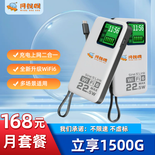 嗖嗖月套餐,wifi+充电宝2合1,一机多用嗨不停!月享1500G!